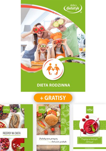 Specjalnie opracowany Program Żywieniowy dla CAŁEJ RODZINY, która wspólnie chce zadbać o zdrowy sposób odżywiania względnie uporać się z nadmiarem kilogramów. Opracowanie zawiera dwa 30-dniowe jadłospisy: oddzielny dla mężczyzny (2000kcal) i oddzielny dla kobiety (1500kcal). Ten drugi może być również stosowany przez dzieci. Program żywieniowy w przeważającej części został skomponowany z tych samych produktów aby ułatwić jego praktyczne stosowanie. Uwzględnia jednak różnice w zapotrzebowaniu na składniki odżywcze. W diecie mężczyzn postawiono duży nacisk na profilaktykę choroby niedokrwiennej serca oraz cukrzycy typu 2. Dieta dla kobiet jest bogata w składniki wspomagające pracę układu hormonalnego oraz kondycję włosów, skóry i paznokci.